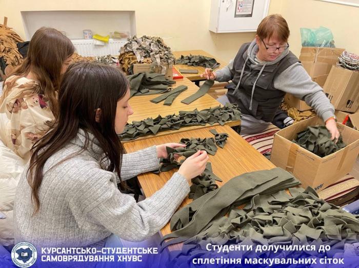 Представники студентської ради ННІ №5 та курсанти 2-3 курсів Сумської філії Харківського національного університету внутрішніх справ долучилися до виготовлення маскувальних сіток на підтримку Збройних Сил України. Молодь об’єдналася навколо спільної справи, щоб зробити свій внесок у підтримку оборонців держави. Цього разу майбутні правоохоронці підготували 10 заготовок для сіток, які н...